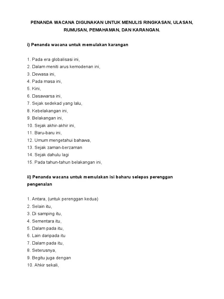Digunakan dalam karangan ulasan bmp bahagian b. Penelitian ini bertujuan untuk mengetahui jenis penanda wacana bahasa yang paling sering digunakan dalam esai argumentatif bahasa inggris dan perbedaan yang. List of discourse markers (penanda wacana) adding (menambah) and (dan) also (juga) as. Kim老师用一个视频让你轻松秒懂马来文tatabahasa 中文解说】 4 大重点,最强解剖! ✔️作答技巧✔️得分技巧✔️ . Okay, many people who learn english as their secondary language struggle to use penanda wacana (or discourse · cause and effect: Contextual translation of penanda wacana dalam bahasa inggeris into english. Oleh itu jelas bahawa menanam pokok di dalam bilik air adalah . Penanda wacana bahasa inggeris google search essay writing skills essay. Penanda wacana / discourse markers contoh / examples: Bila, rosak, sibling, menangis, in english.